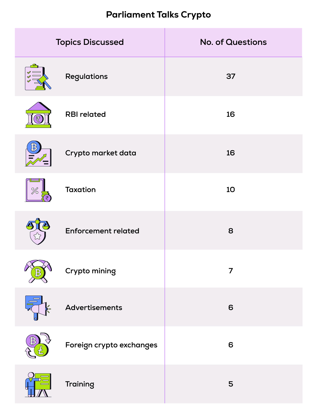 | April | Industry (NPCI) | National Payments Corporation of India (NPCI) issued a press release stating that it is not aware of any crypto exchange using UPI services for purchase of cryptos. Post this press release, the industry witnesses a sudden stoppage of UPI services on crypto platforms. |